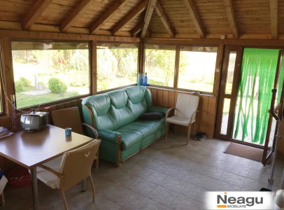 -Parter format din: terasa de 25mp, inchisa cu tamplarie din PVC cu geam termopan, bucatarie cu loc de luat masa, dormitor oaspeti, living si baie cu sauna;