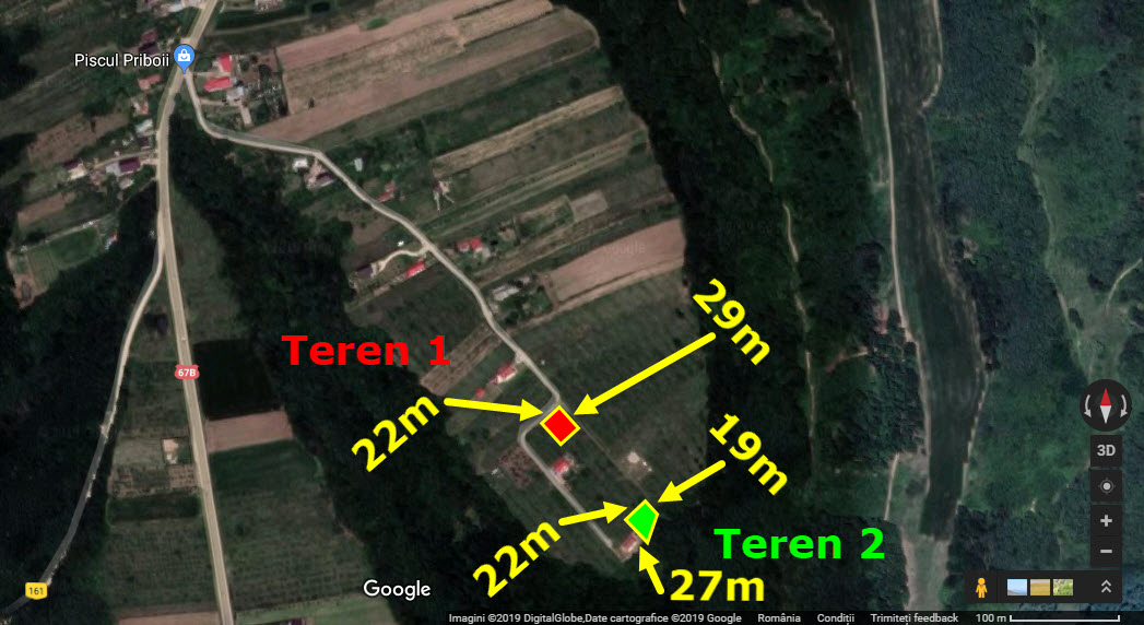 DE VANZARE – terenuri intravilan Mosoaia (637 mp/ fs 22+29 ml, 500 mp/fs 19ml), pe str Piscul Priboii (~10 km din Pitesti), la aprox. 500m din DN67B. Cadastru efectuat si utilitati in imediata vecinatate (electricitate si apa). Pret: 20 euro/mp